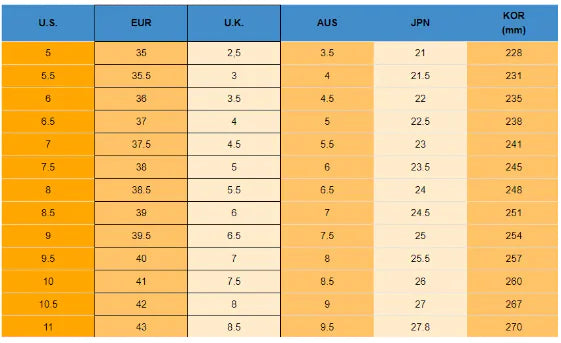 shoe size chart INFO